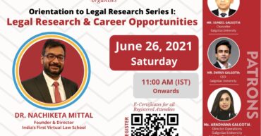 Event Title: Orientation to Legal Research Series I: Legal Research & Career Opportunities. Date of Event: Saturday, June 26, 2021 Time: 11:00 AM Onwards Organiser: Centre for Legal Research & Pedagogy (CLRP) in association with SOL Library Committee, School of Law, Galgotias University Register Yourself. Registration free. Certificates for registered attendees. Registration Now Event Link […]